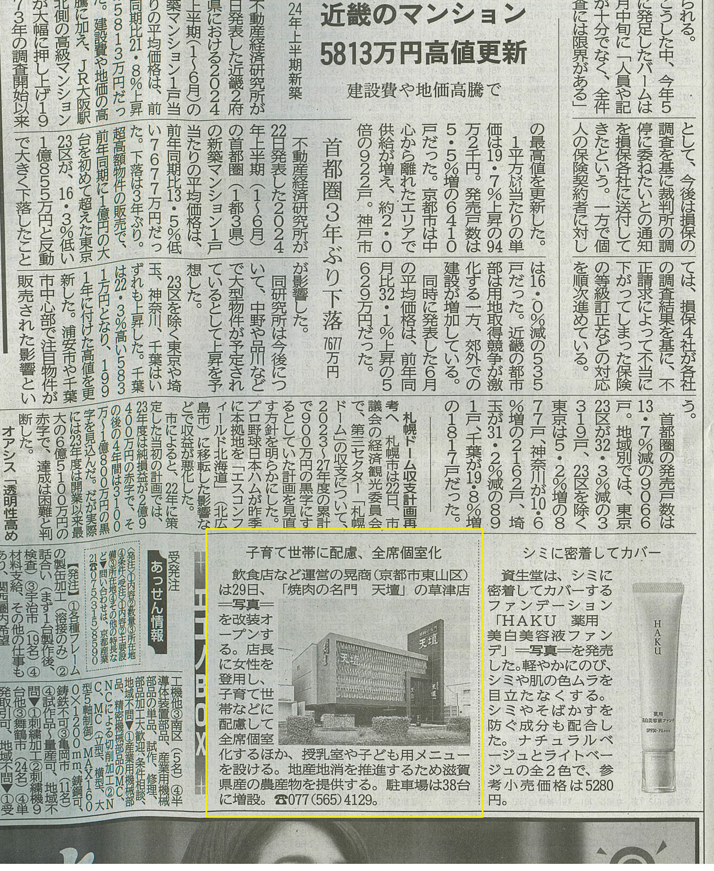 2024年7月23日刊行の京都新聞にて、天壇草津店をご紹介いただきました。